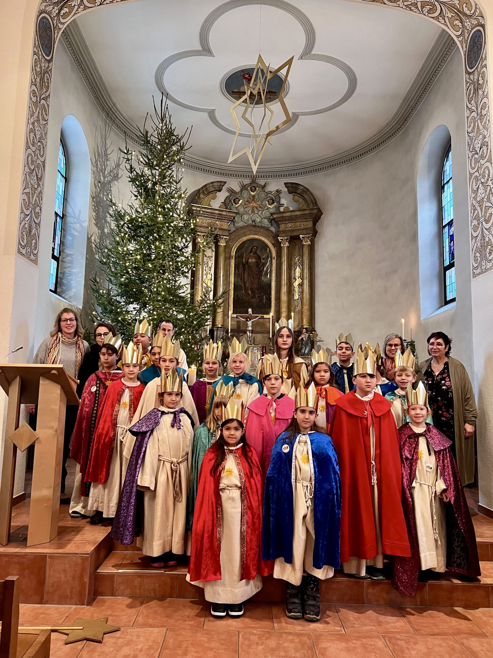 Im Familiengottesdienst am Sonntag, 4. Januar um 9.15 Uhr werden unsere Sternsinger ausgesandt. Nach dem Gottesdienst segnen die Sternsinger zuerst die Kirche. Anschliessend ziehen sie in Gruppen durch das Dorf. Mit Liedern und Worten werden sie den Menschen Gottes Segen und seinen Frieden für das neue Jahr bringen. Wenn Sie spenden möchten, kommt diese Spende Kindern in Bangladesch zugute. Unter dem diesjährigen Motto: «Schule statt Fabrik» unterstützt Missio mit den Partnerorganisationen Projekte, die Kindern den Weg aus der Zwangsarbeit ermöglichen – hin zu Bildung, Selbstbestimmung und einem besseren Leben. Danke sagen wir den Kindern, die das Sternsingen so lebendig halten, sowie Irene Fischer, Virág Hanna und Janine Bubendorf, die die Lieder und Worte mit den Kindern einüben und sie auf ihrem Weg durch das Dorf begleiten.